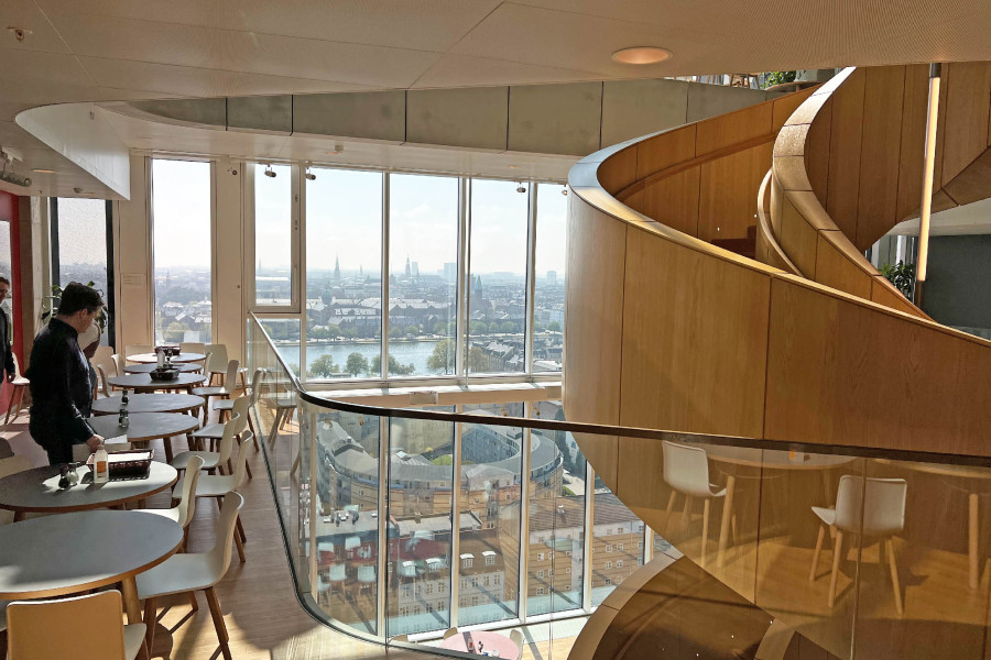 Begonnen haben wir mit der Besichtigung des Panum Instituts der Faculty of Health and Medical Sciences der Universität Kopenhagen. C.F. Møller haben den Wettbewerb für das Institut mit dem Vorschlag eines Turmes gewonnen. In der Kopenhagener Stadtlandschaft ist das eine Besonderheit, ermöglicht aber dadurch mehr Freifläche auf dem Grundstück und öffentliche Durchwegungen für die Nachbarschaft. Mit dem Turmbau (Maersk Tower) setzen C.F. Møller neue Maßstäbe für eine Laborumgebung, in der Kommunikation und Kooperation ebenso wichtig sind wie eine hochwertige Laborausstattung. Herzstück des Entwurfes sind die mehrgeschossigen Gemeinschaftsbereiche der Labore mit eigenen Küchenzeilen, die mit einer hölzernen Wendeltreppe über die gesamte Höhe des Turmes miteinander verbunden sind. So können die Forschungsteams besser miteinander kooperieren und sich über die Geschosse hinweg zu neuen Forschungsgemeinschaften zusammenschließen.