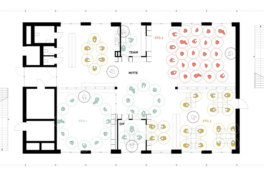 Der Pausenhof vereinigt mühelos alle Ansprüche an das offene Schulhaus: er ist nicht abgezäunt, er passt sich Bedürfnissen an, verändert sich im Laufe der Jahreszeiten, bringt Kinder unterschiedlichen Alters zusammen, erlaubt das ruhige Absondern in kleinen Gruppen und gleichzeitig das ausgelassene Herumtoben. Dadurch funktioniert er als Ausgleich zum durchstrukturierten Lernalltag von Kindern – ein Stück Freiheit, das essentiell ist.