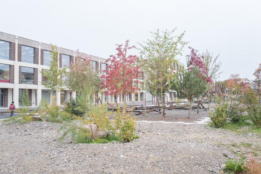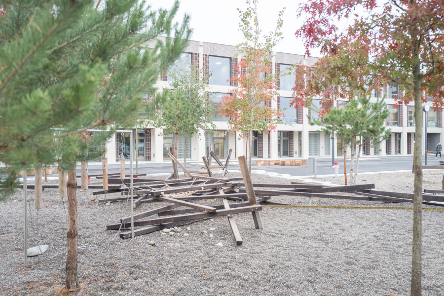 Dass auch der Schulhof eine wichtige Rolle in der „Schule der Zukunft“ spielen muss und kann, zeigt der Schul-Spielplatz von Ganz Landschaftsarchitekten (Spielgeräte von Motorsänger) in Uster nahe Zürich, von 2019. Boltshauser Architekten und Ganz Landschaftsarchitekten gewannen 2014 einen Wettbewerb für den Neubau der Primarschule Krämeracker (in Ergänzung zu einer bestehenden Sekundarschule).