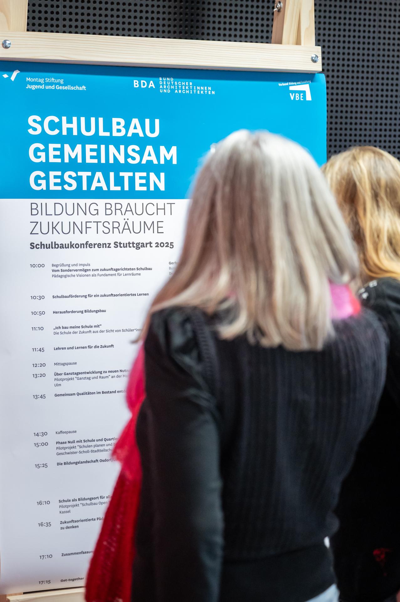 Zu Beginn der Konferenz machte der Landesvorsitzende des VBE Baden-Württemberg, Gerhard Brand, mit Blick auf repräsentative Daten einer aktuell vom VBE veröffentlichten forsa-Umfrage den Handlungsdruck sichtbar: hoher Sanierungsbedarf, Modernisierungsstau und zu selten ein professioneller Planungsprozess. Die gemeinsame Forderung der Veranstalter*innen, die auch Dr. Meike Kricke und Barbara Pampe von der Montag Stiftung Jugend und Gesellschaft sowie Liza Heilmeyer vom Bund Deutscher Architektinnen und Architekten BDA in ihren Begrüßungen betonten: Die Investitionsgelder des Bundes, welche über das Infrastruktursondervermögen in die Kommunen kommen sollen, werden dringend gebraucht, um ins Tun zu kommen. Und: Geld allein reicht nicht. Entscheidend ist, wie wir Pädagogik neu definieren, Räume neu denken und Prozesse gemeinsam tragen und gestalten.