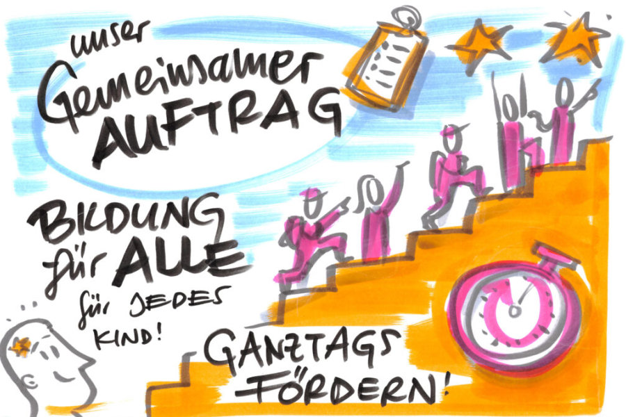 Der Beteiligungsprozess zur Entwicklung des Gesamtkonzeptes Ganztag liegt nunmehr drei Jahre zurück. Damals erarbeiteten etwa 180 Teilnehmende der Frankfurter Bildungslandschaft in zahlreichen Workshops das Gesamtkonzept Ganztag. Zentrales Augenmerk in der Konzeptentwicklung: die Bedarfe und Interessen des Kindes.
