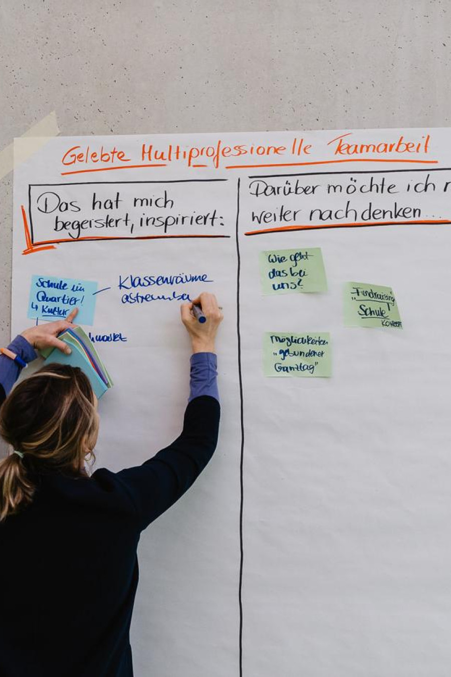 Die Förderrichtlinien der Länder weisen die förderfähigen Maßnahmen jeweils aus. Dabei sind die Beauftragungen von Prozessbegleitungen (zumeist) in der Förderung inbegriffen. So heißt es beim Schulministerium NRW: „Sofern eine externe (Prozess-)Beratung und Begleitung in direktem Zusammenhang mit einer Investitionsmaßnahme steht, könnte die Maßnahmen als förderfähig betrachtet werden.“ Auch eine neue Ausstattung, neue Brandschutzkonzepte oder ein Umbau ist förderfähig (u. a. Infrastrukturausbau im Ganztag). Die Prozesse und die entwickelten integrierten Nutzungskonzepte des Projektes „Ganztag und Raum“ zeigen dabei: Es lohnt sich, den Bestand näher zu betrachten und in einen pädagogisch, organisatorisch wie räumlichen Ganztagsprozess zu investieren!