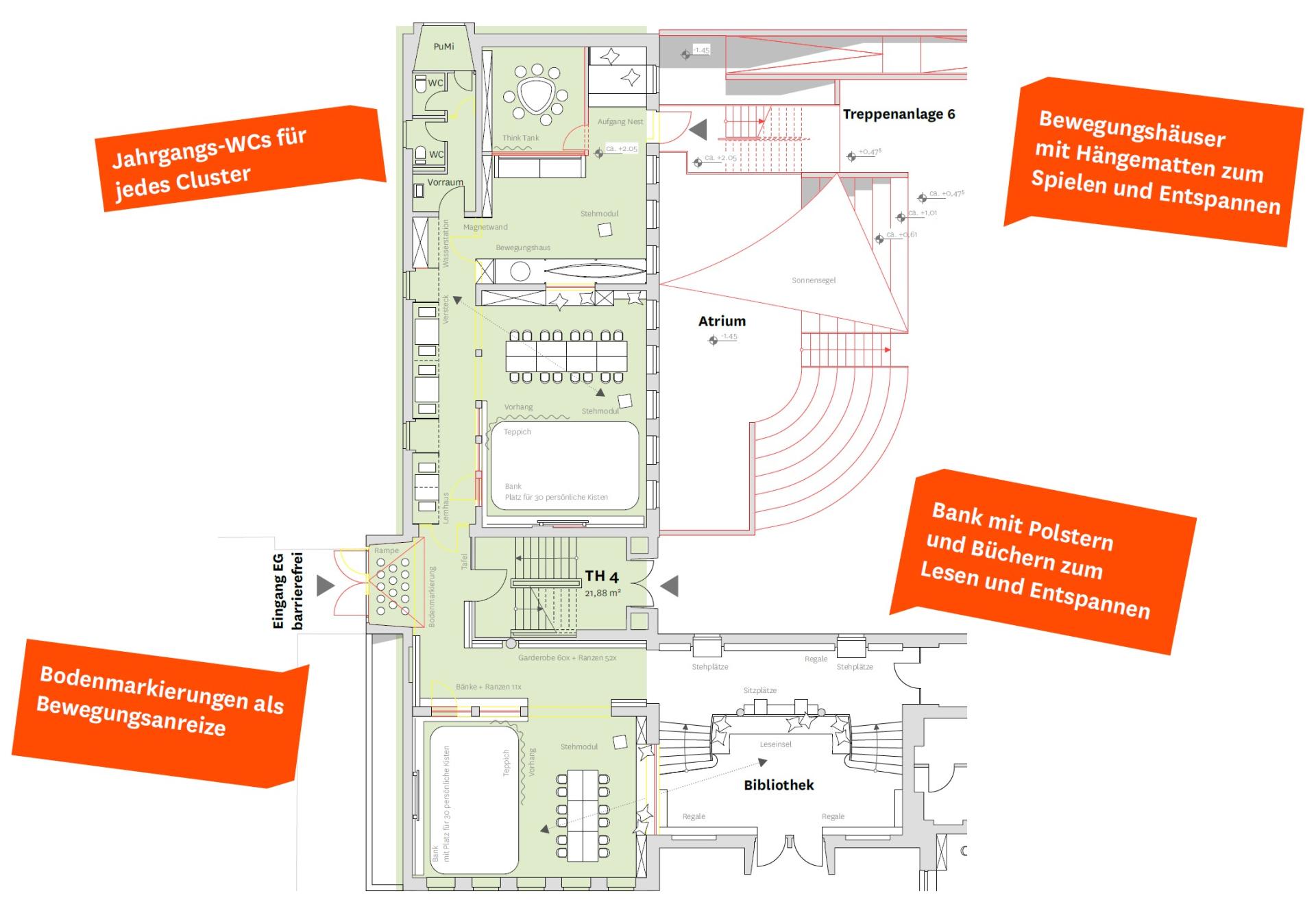 Flächenorganisation: Jahrgangscluster mit Nutzungsbereichen