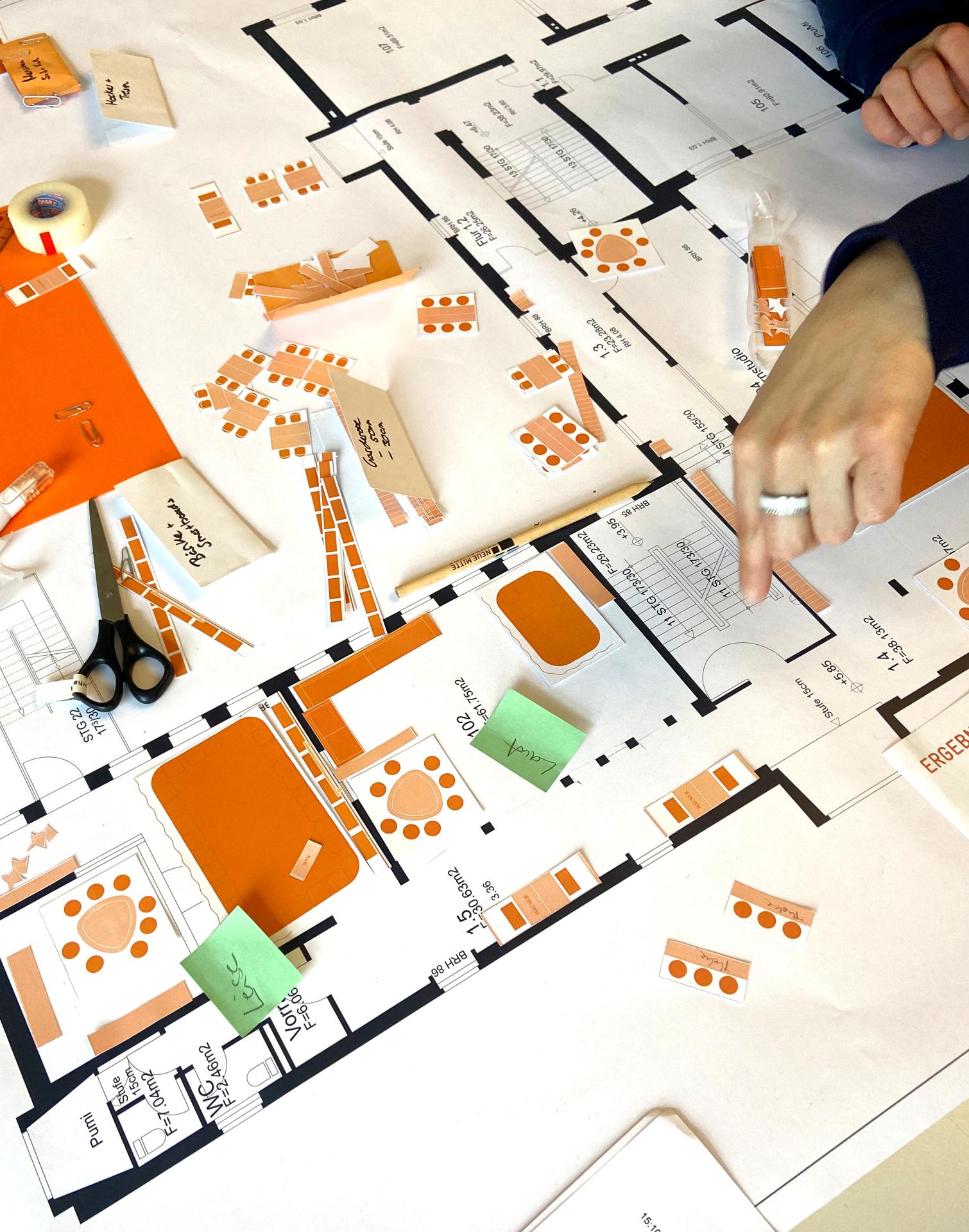 In dem gemeinsamen Prozess wird durch das multiprofessionelle Team, Kinder, Eltern, Schulträger, Schulaufsicht und Bauverwaltung eine kindgerechte Rhythmisierung des Ganztags erarbeitet, die formales, non-formales und informelles Lernen verbindet. Hierbei werden die pädagogischen Bedarfe und Aktivitäten zusammengefasst, die die Anforderungen an den Raum (s. Zukunftsgerichtete Lernräume im Bestand) und an die Möblierung definieren (weitere Informationen zum Planungsthema Möblierung bei Schulbau Open Source). Ebenfalls werden Fragen zur Ausführung abgewogen, u. a. welche Sitz- und Tischhöhe für die unterschiedlichen Funktionen sinnvoll sind bzw. inwieweit Möbel mit Fußrasten zum Einsatz kommen. Dies ist insbesondere in Bereichen zu diskutieren, die von der gesamten Schulgemeinschaft genutzt werden (u. a. Mensa).