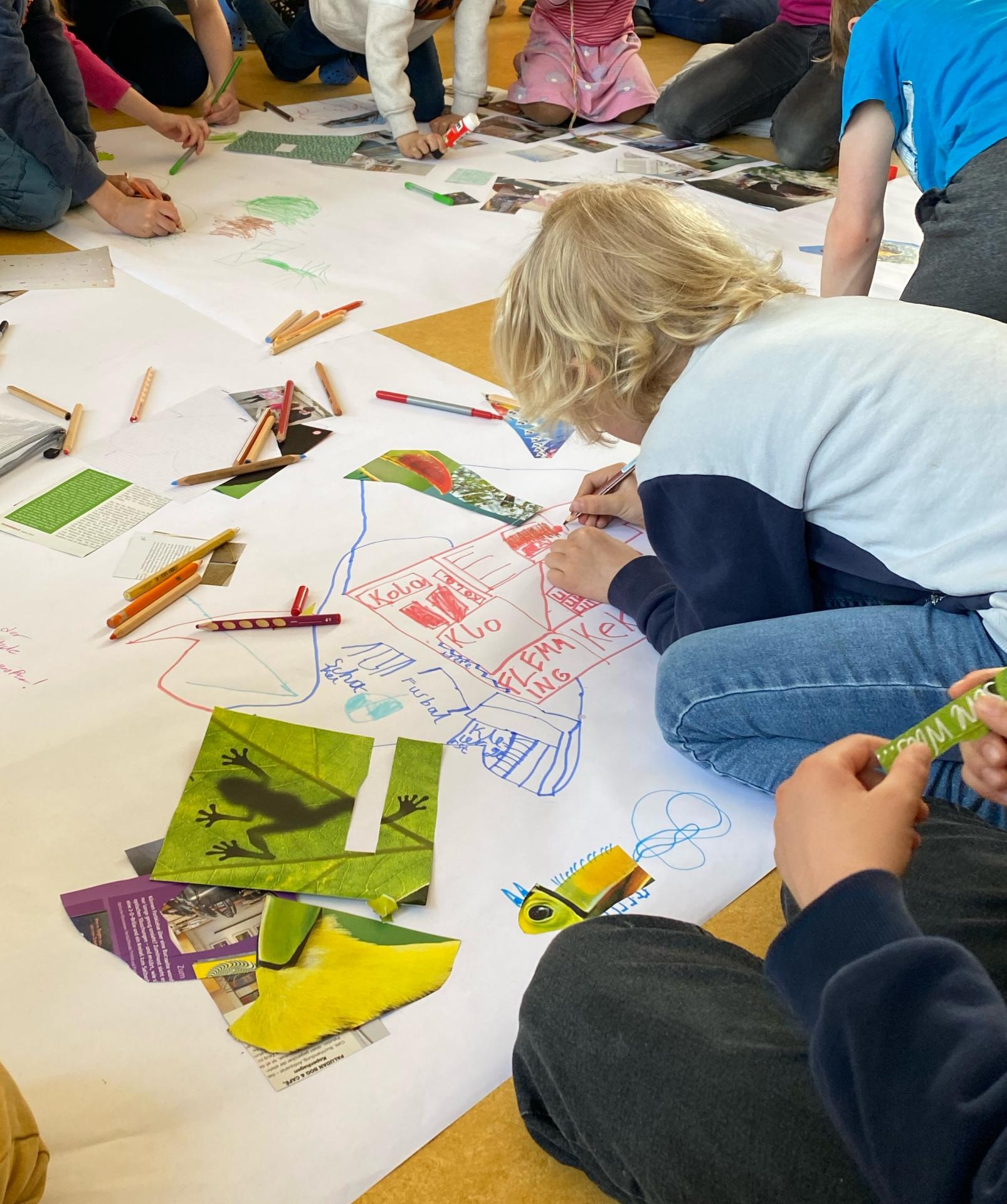 Zunächst werden pädagogische und organisatorische Grundlagen mit allen Prozessbeteiligten aus Schule, Hort und Verwaltung erarbeitet: Auf der Basis von einem gemeinsames Bildungsverständnis, multiprofessionelle Kooperation und kindgerechter Rhythmisierung des Ganztags werden konkreter Aktivitäten beschrieben. Daraus werden die Anforderungen an den Raum abgeleitet. Ebenso erkunden die Kinder in Workshops ihr Schulgebäude und formulieren Potenziale und Bedarfe. Begleitet wurde dieser einjährige Gesamtprozess durch uns und eine externen Prozessbegleitung aus Pädagogik und Raum (Andrea Rokuß (confidio) und Dorle Zweering (gernot : schulz architektur GmbH)).